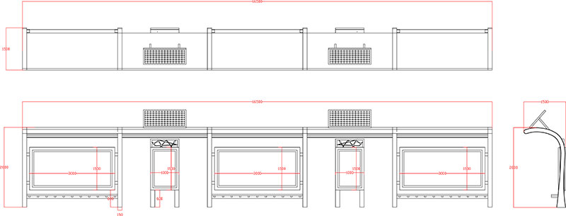 四箱體三大一小尺寸:長約17米,高約3米,寬約1.5米