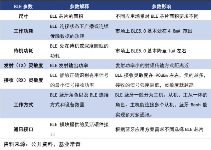 圖1 ble藍牙芯片主要參數解釋和影響