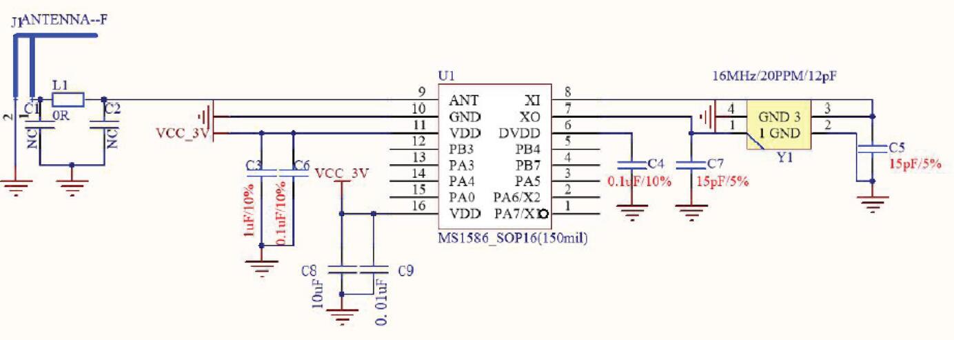 MS1586包含8位單片機和低功耗、低成本的BLE收發器,內部集成了發射機、接收機、GFSK調制解調器和BLE基帶處理。遵循BLE廣播通道通信,具有成本低、體積小、控制方便等優點。